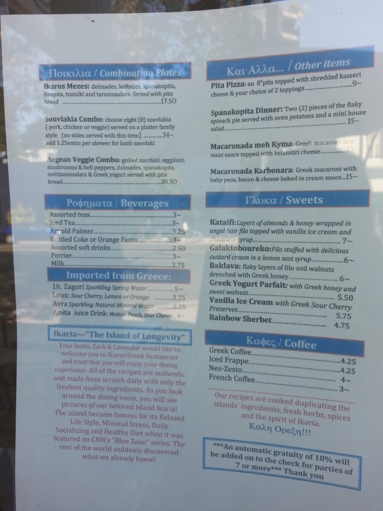 Ikaros Greek Restaurant (Takeout & Catering) Menu
